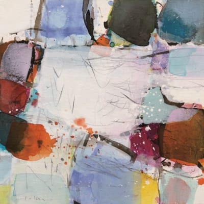 Zwischenraum Ein offener Raum zwischen den Flächen schafft Luft und Licht im Bild. Meist reicht es nicht, ihn einfach unbemalt zu lassen. Wir schauen uns an, was es braucht, damit er sich selbstverständlich im Flächenganzen einfügt. Die Arbeit fängt meist mit „malerische Betrachtungen“ an. Hin und wieder werden einzelne Schritte mit Pinsel und Stift demonstriert, als Anregung für die eigene Arbeit. Eine kleine Fundgrube aus Skizzen auf Papier wird angelegt. Das verwendete Material ist Acryl.