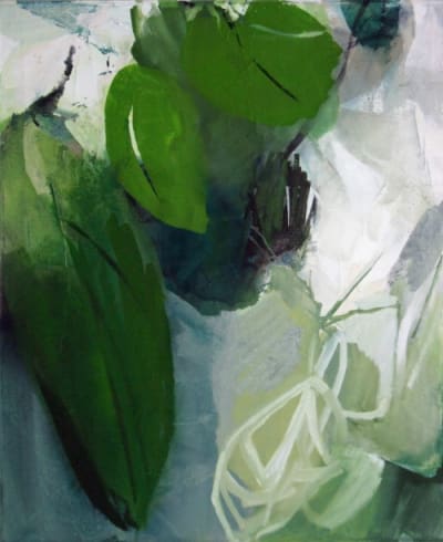 Ziel für die Bilder ist die individuelle Lösung, die entdeckt wird in einem wechselvollen Entstehungsprozess. Gearbeitet wird u.a. mit einer Mischung aus fertigen Acrylfarben und einigen Pigmente auf Leinwand